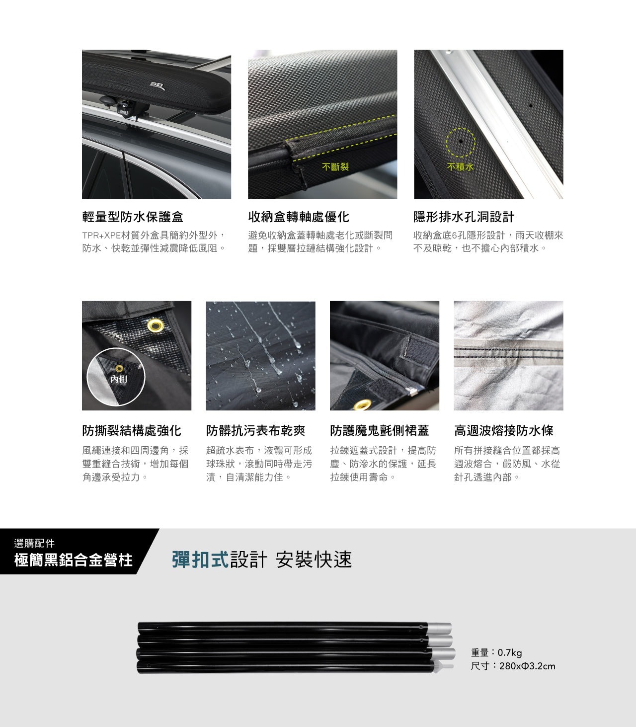輕量型防水保護盒 搭配超大遮蔽面積棚布