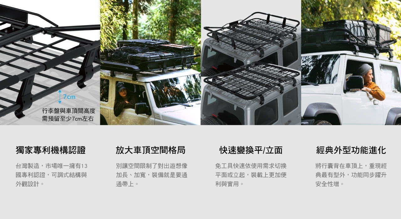 免工具切換 立體 | 平面設計:盤體可依據需求切換,車頂載物空間不受限
