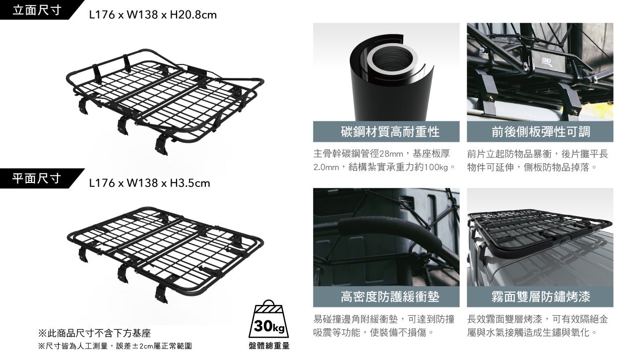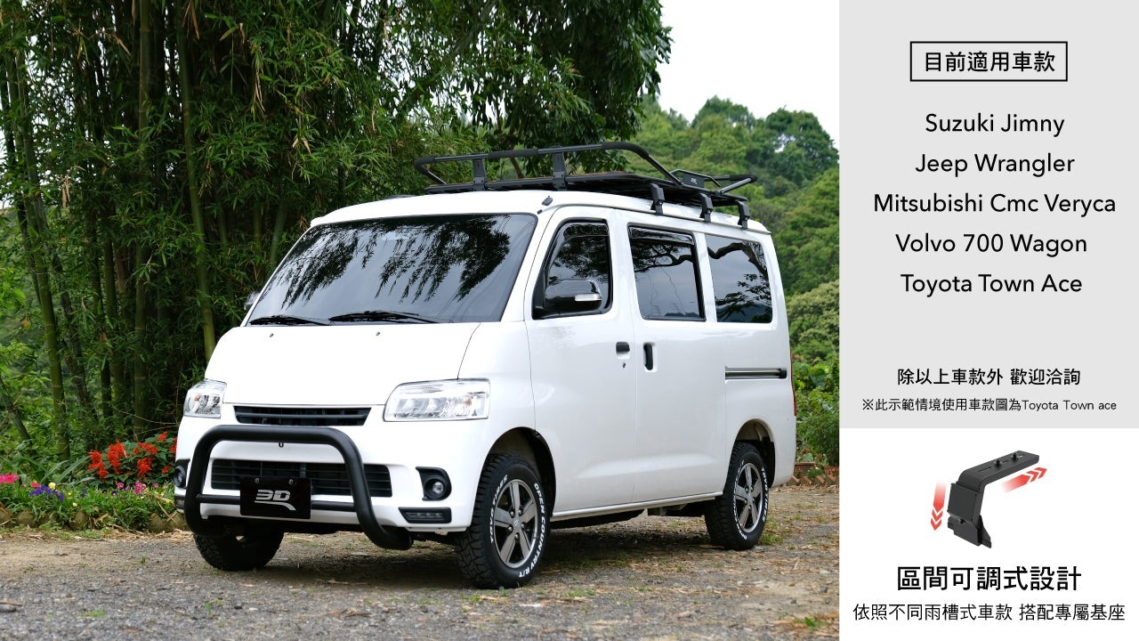適用雨槽式車型:適用於雨槽式車款,加長、加寬,放大多一倍車頂可置物空間