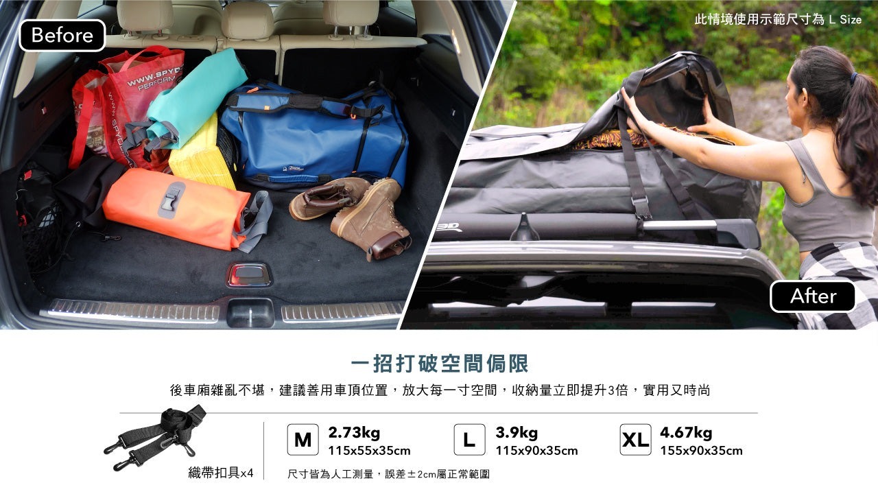 尺寸:M: 115x55x35cm 8立方英尺(適用行李盤M)