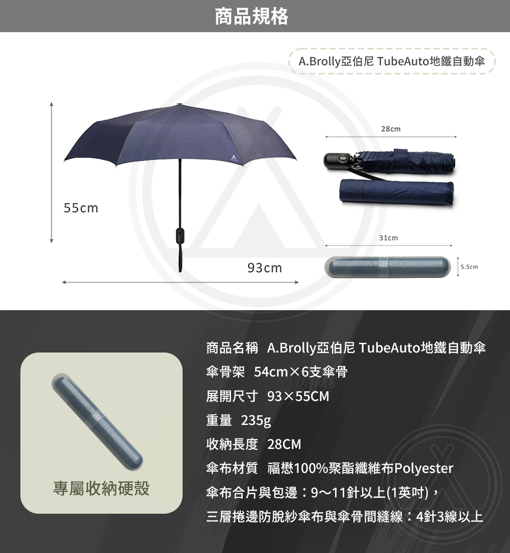 傘面張開寬度與高度:寬度93CM、高度55CM、重量235g