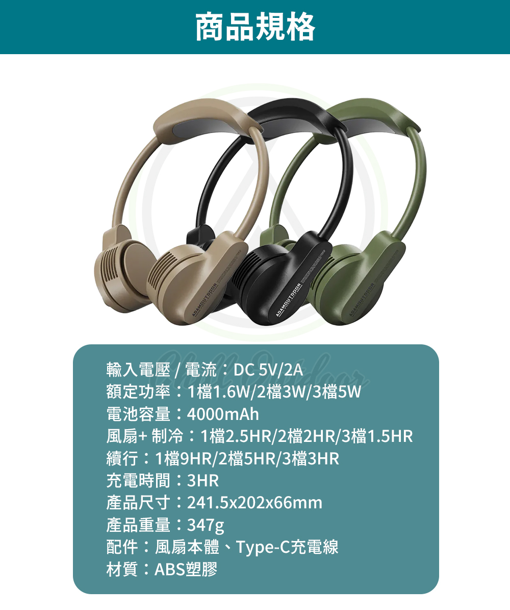 配件:風扇本體、Type-C充電線