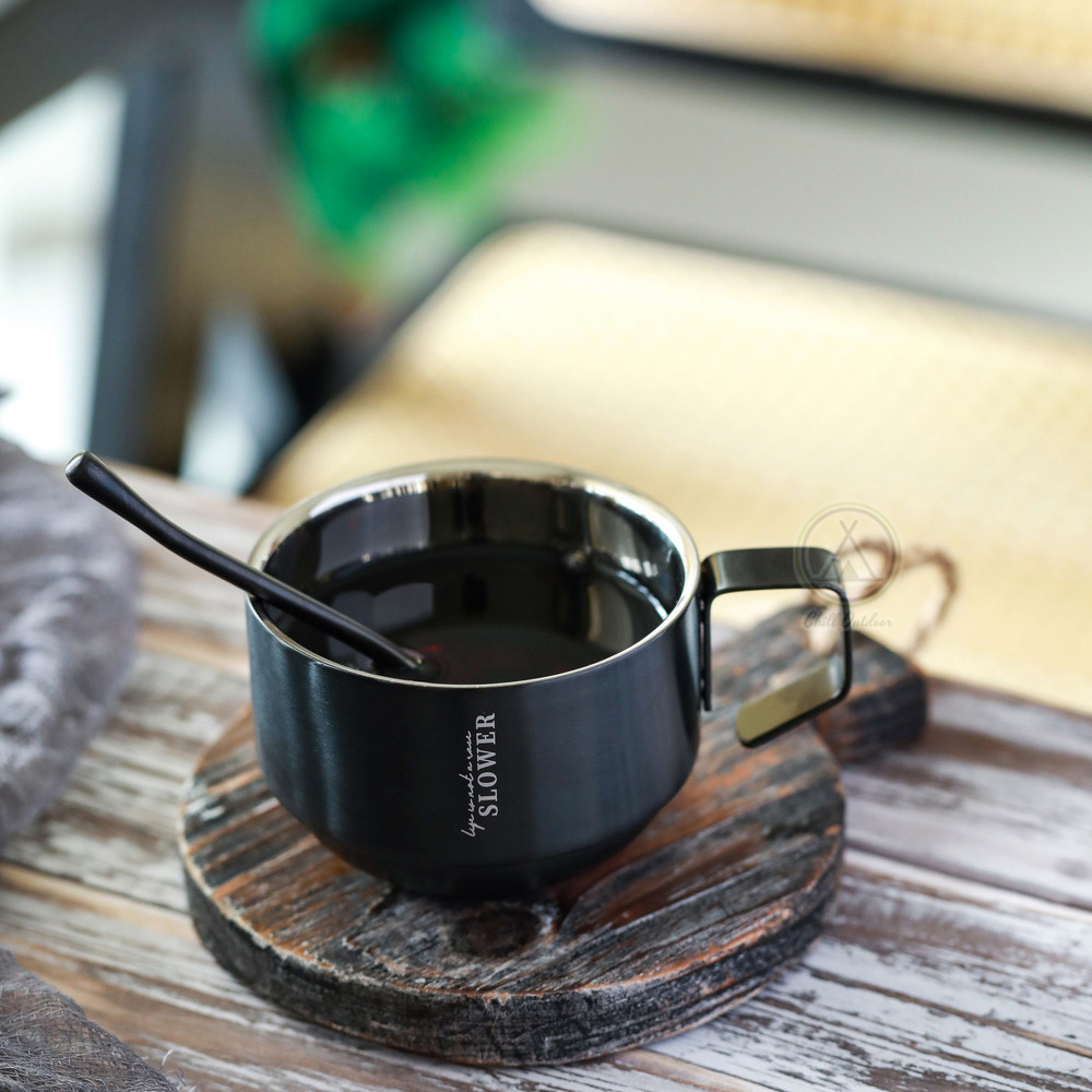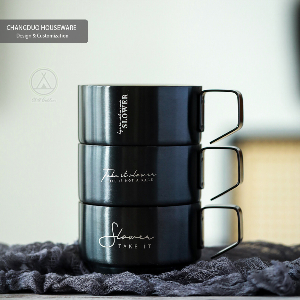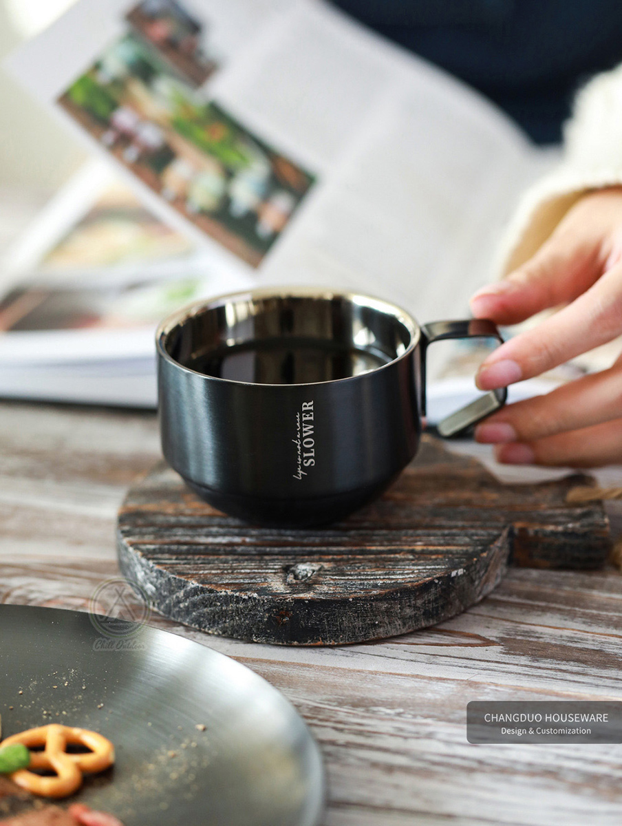 304不鏽鋼 黑色隔熱咖啡杯-(3款)