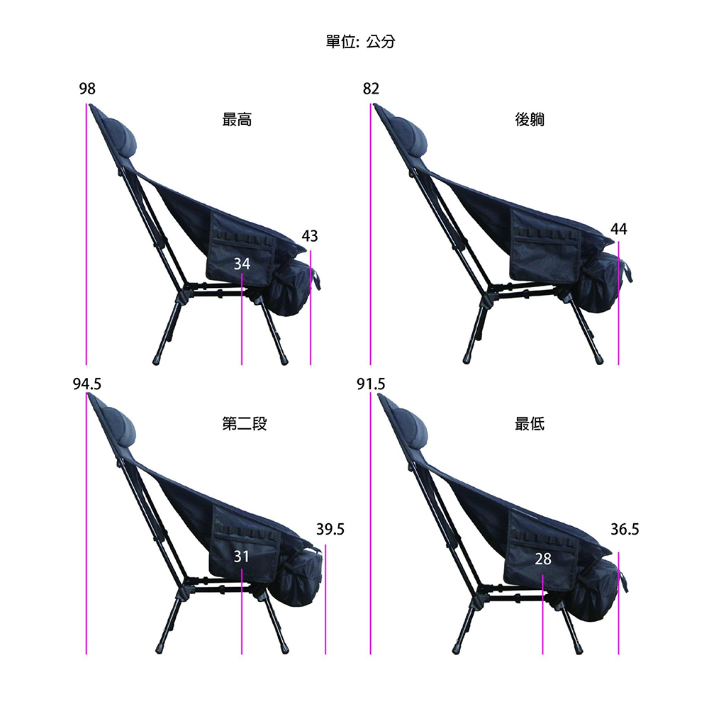 ✔椅子高度、椅背斜度三段調整,適應各種情境