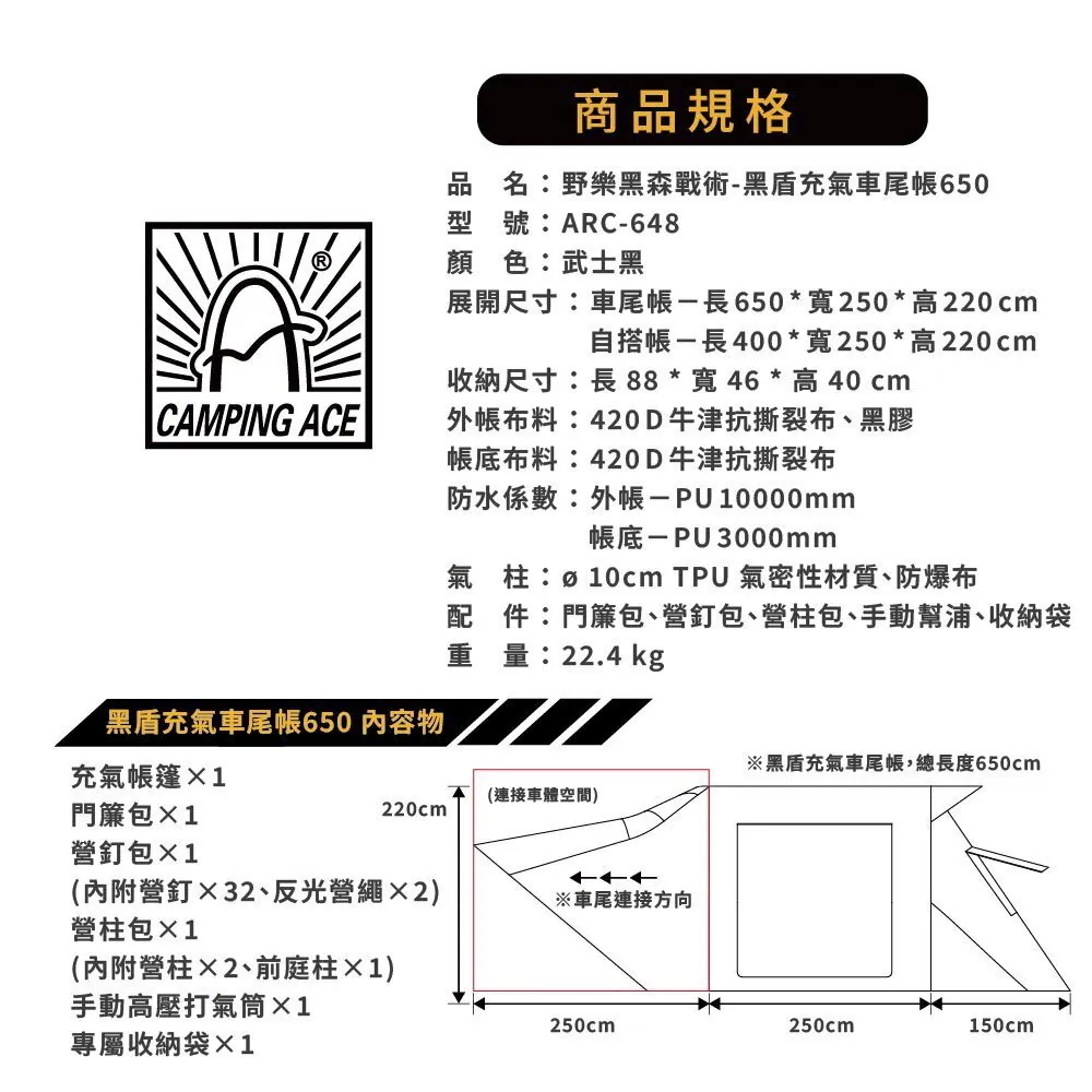 品名: CAMPING ACE 野樂黑森戰術-黑盾充氣車尾帳650