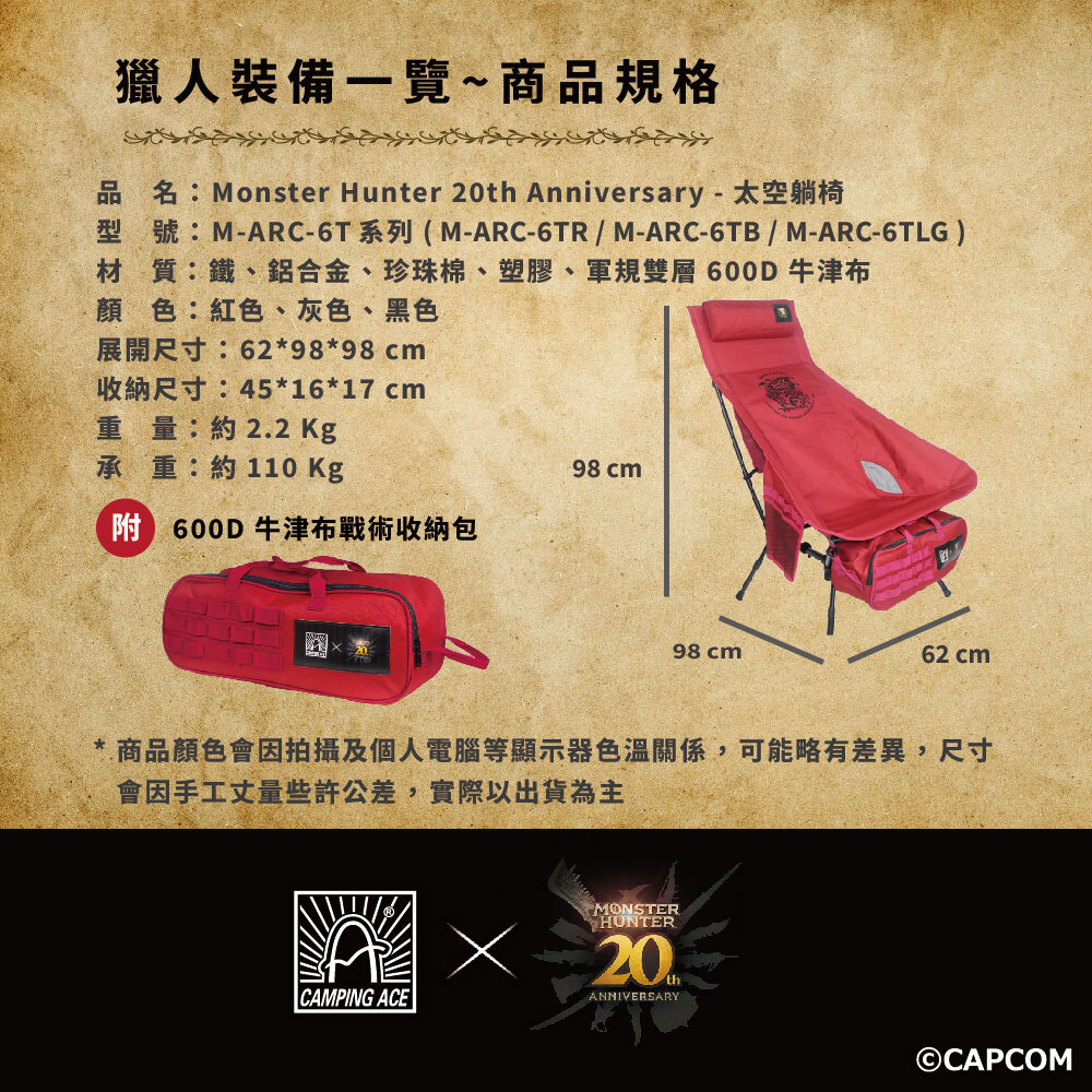 野樂Camping Ace 魔物獵人聯名 太空躺椅 (大款)