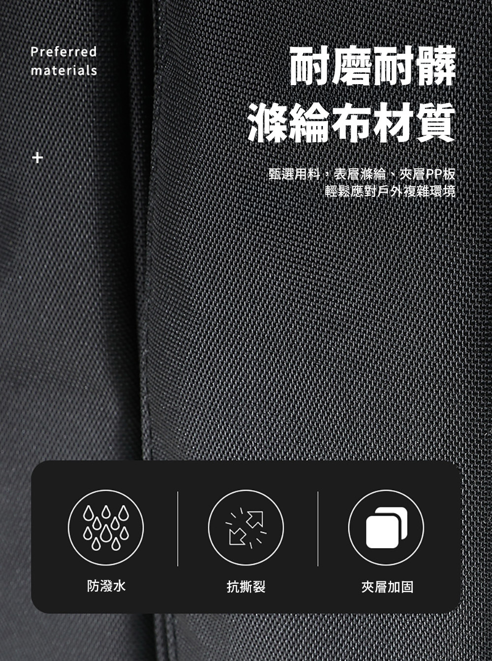 ▶︎防潑水、抗撕裂、堅固耐用