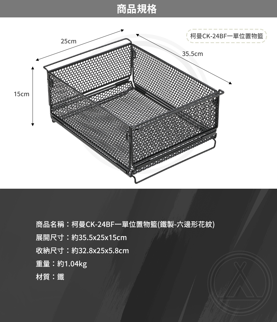 柯曼Campingmoon 一單位置物籃(鐵製-六邊形花紋) CK-24BF