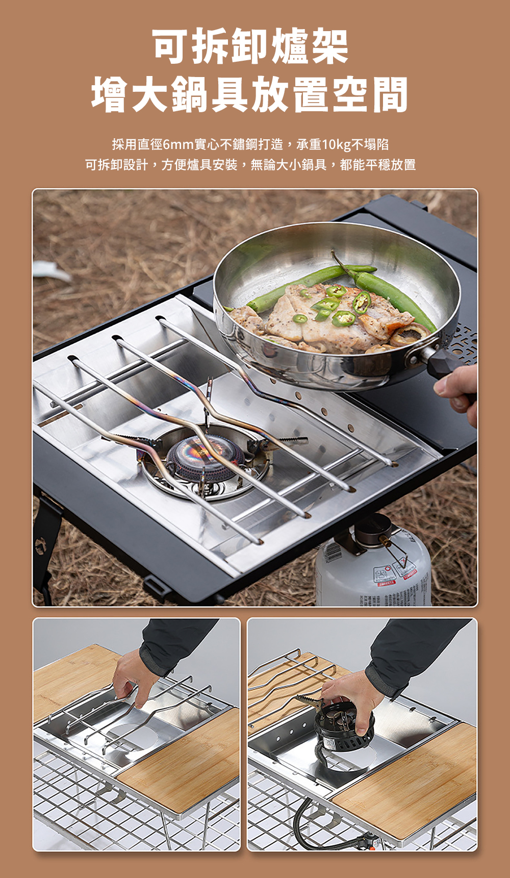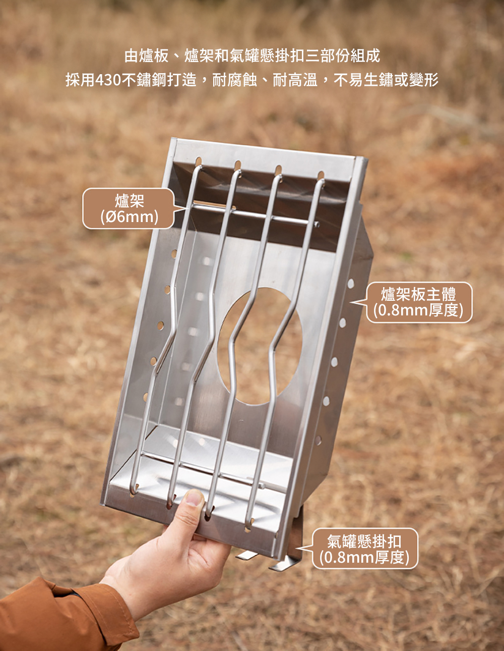 ■ 可拆卸爐架,方便安裝與收納