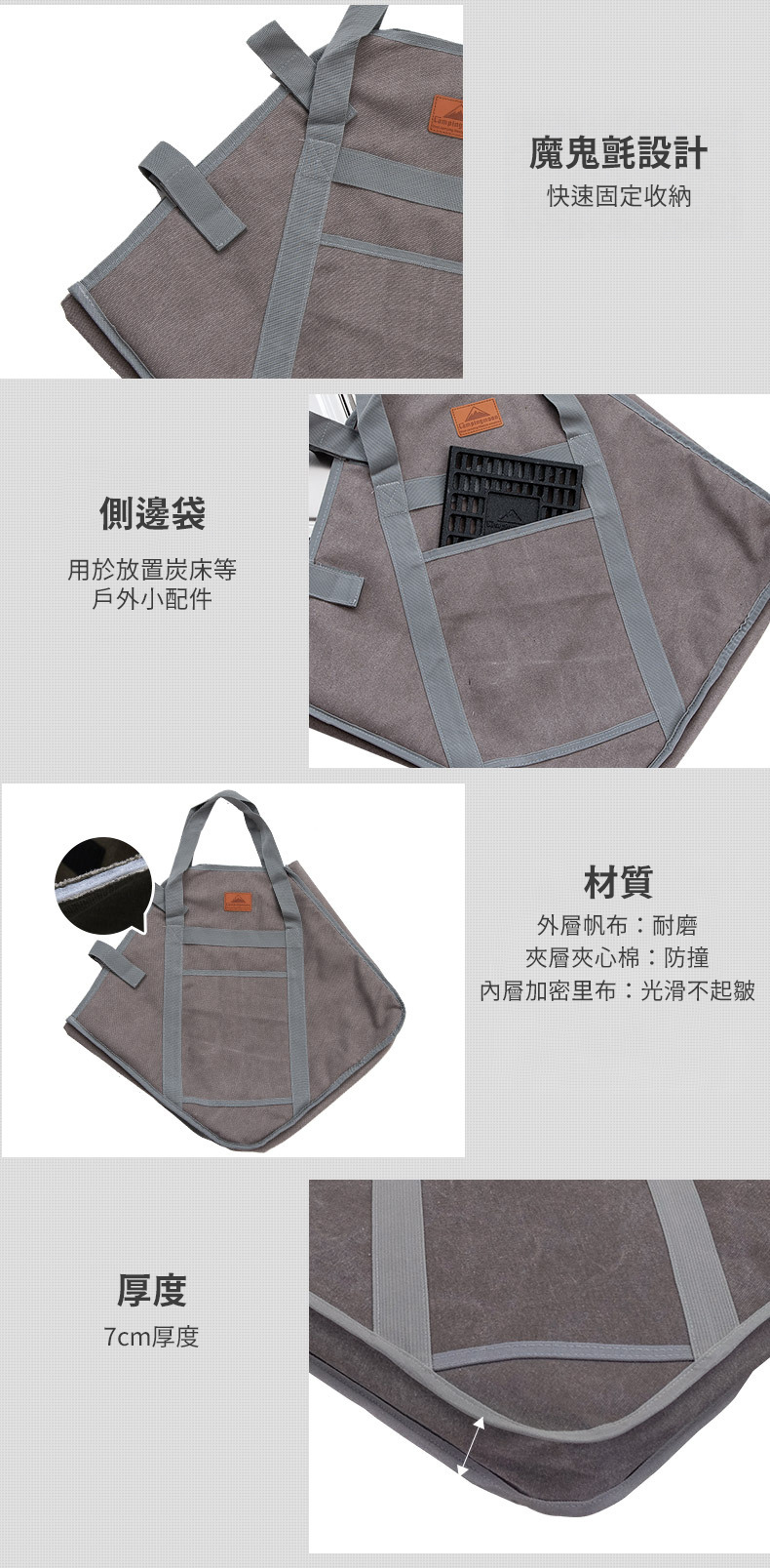 材質:外層帆布、夾層珍珠棉、內層加密裡布