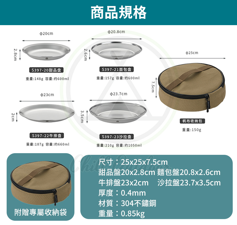 ✔ 野營、露營必備的不鏽鋼盤子套組