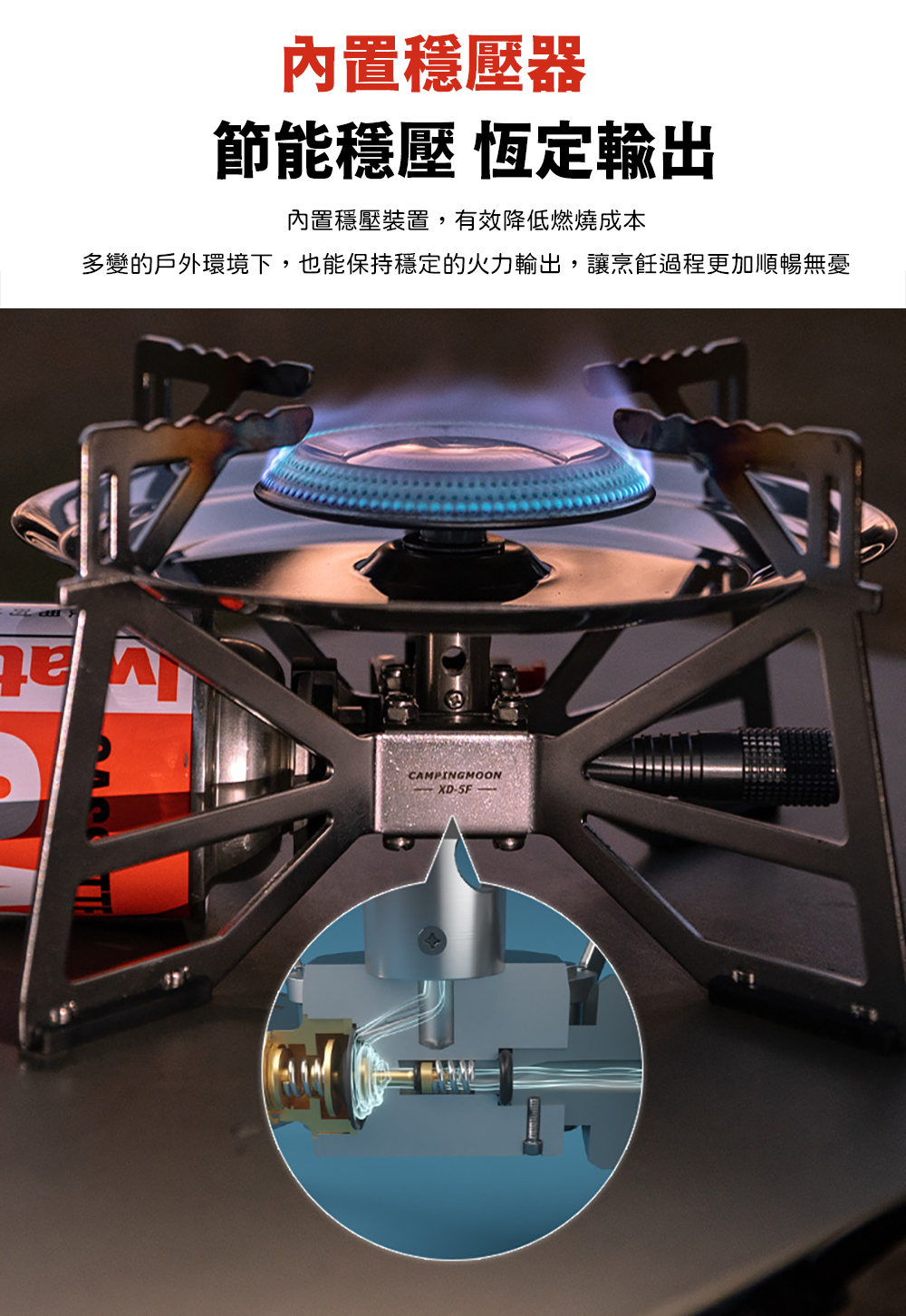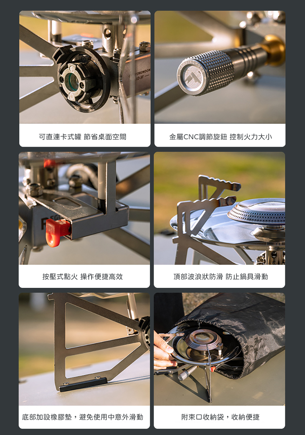 ✔按壓式點火,金屬CNC調節旋鈕,控制火的大小