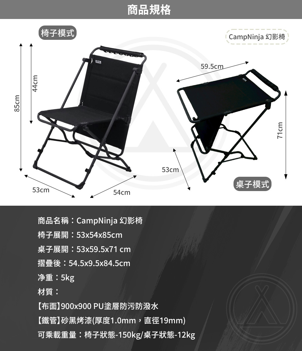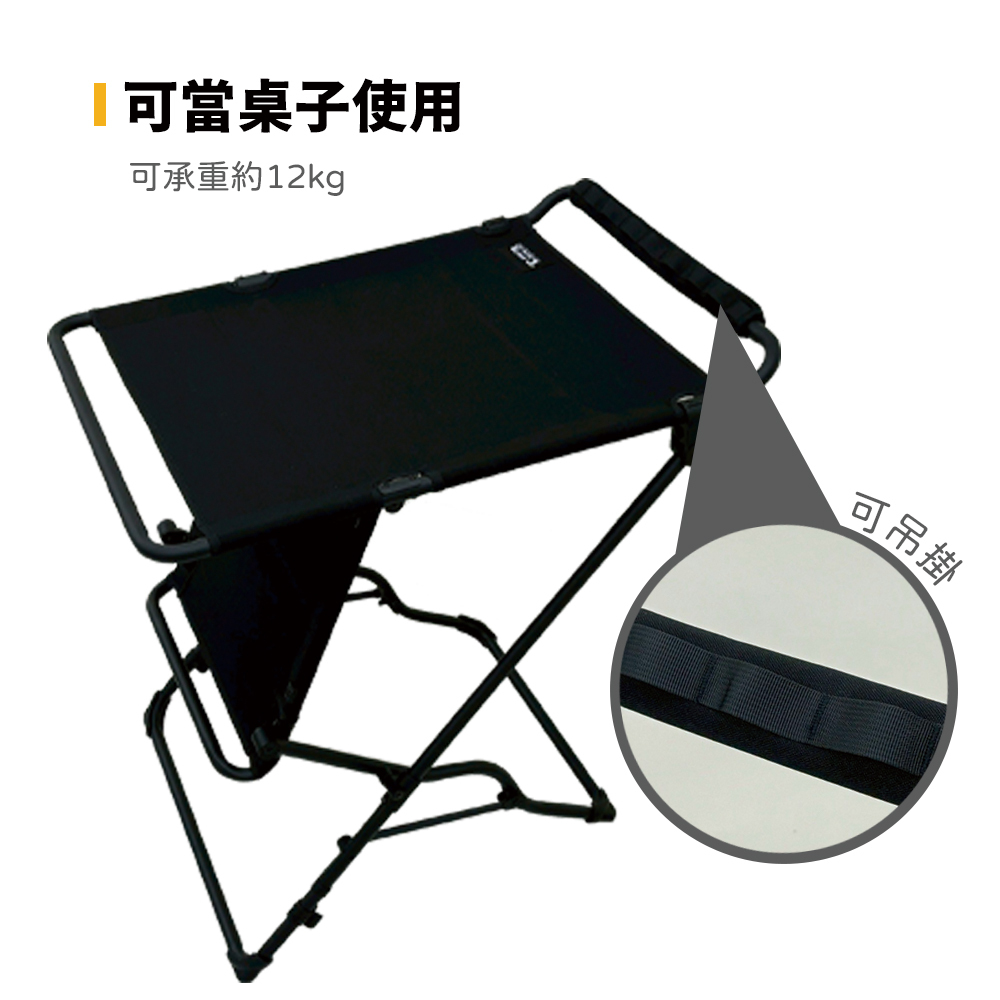 ▶一椅兩用設計,可快速變形為小桌使用,靈活應對各種露營情境