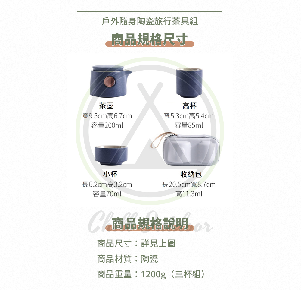 - 四杯組:茶蓋x1入、茶壺x1入、杯子x3入、收納套x1入