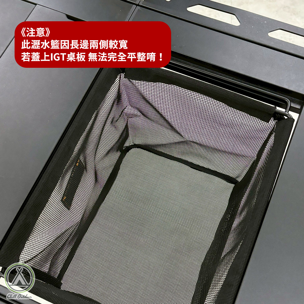 ⚠️注意⚠️ 此瀝水籃因長邊兩側較寬,若蓋上一單位、半單位桌板 無法完全平整唷!
