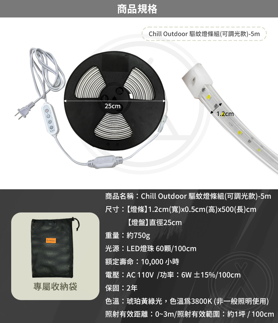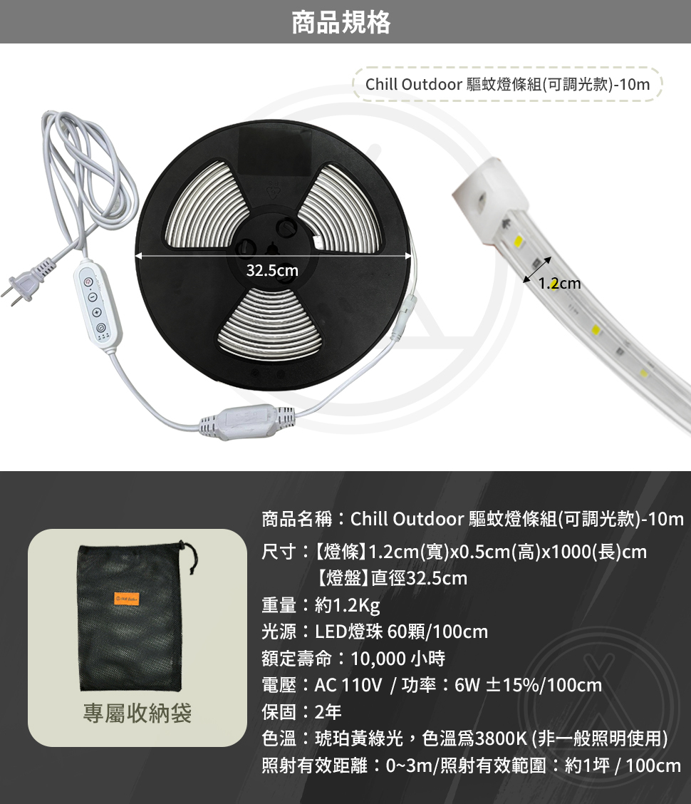 ● 可調光亮度設計:依場景調節亮度,兼具防蚊+氛圍照明。