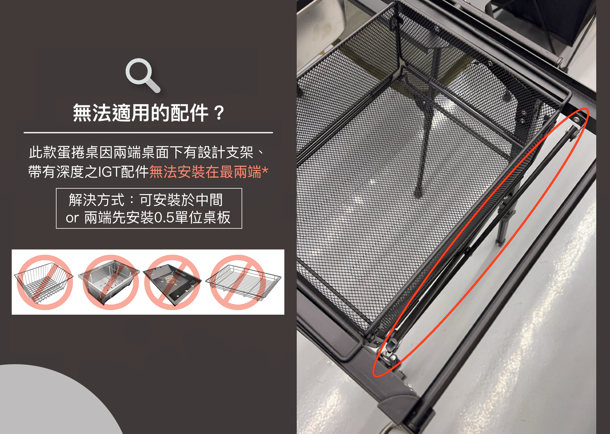 ⚠️尺寸皆為手工丈量,可能存在些微誤差±0.3cm⚠️此款蛋捲桌因兩端桌面下有設計支架、�帶有深度之IGT配件無法安裝在最兩端*(可安裝於中間 or 兩端先安裝0.5單位桌板)