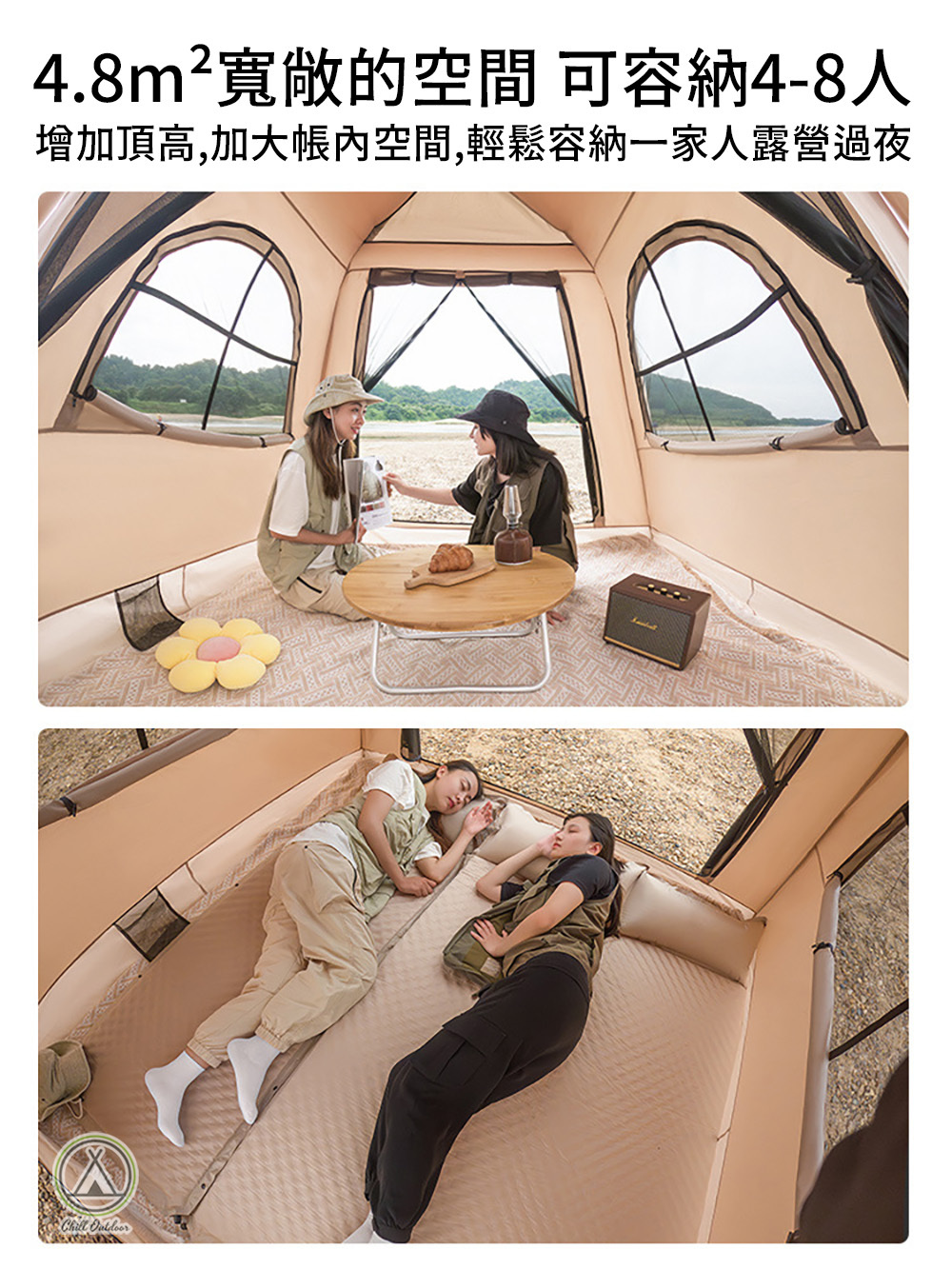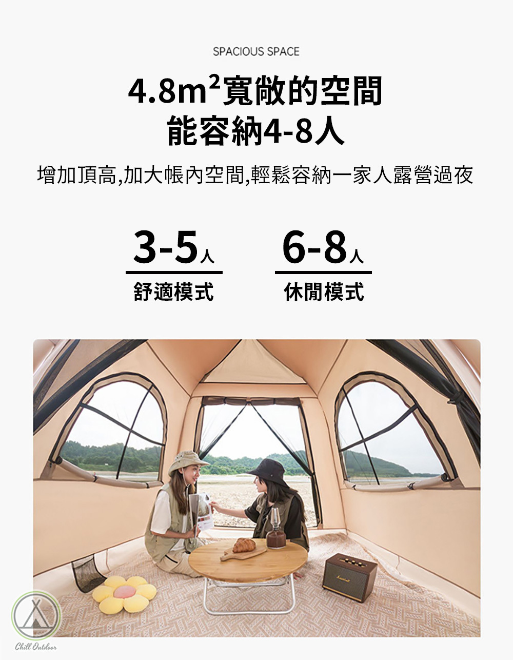 ▶︎4.8平方公尺寬敞的空間,舒適容納4人