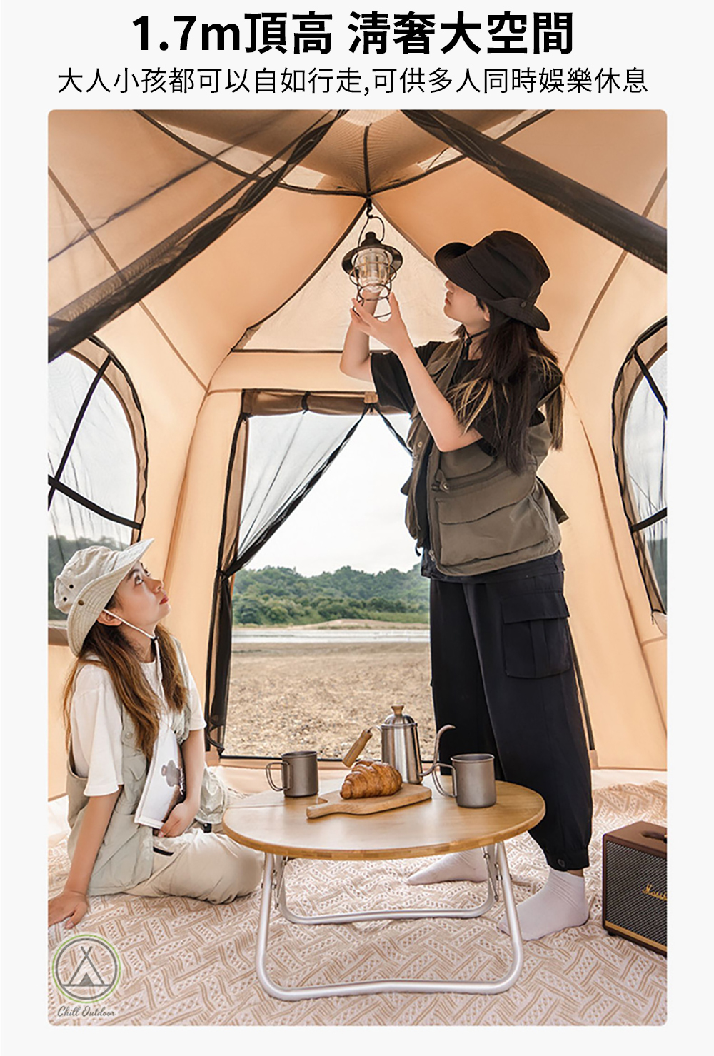 ▶︎頂高1.7公尺,大人都可以行走自如