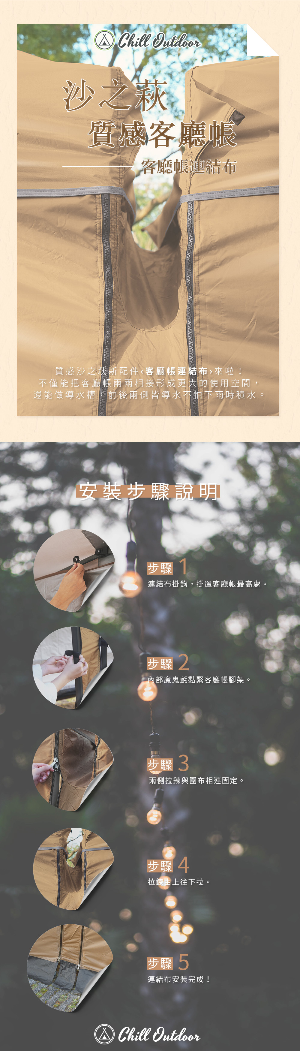 ✨2個客廳帳之間可加購連接布,防止帳帳之間的雨水滴落