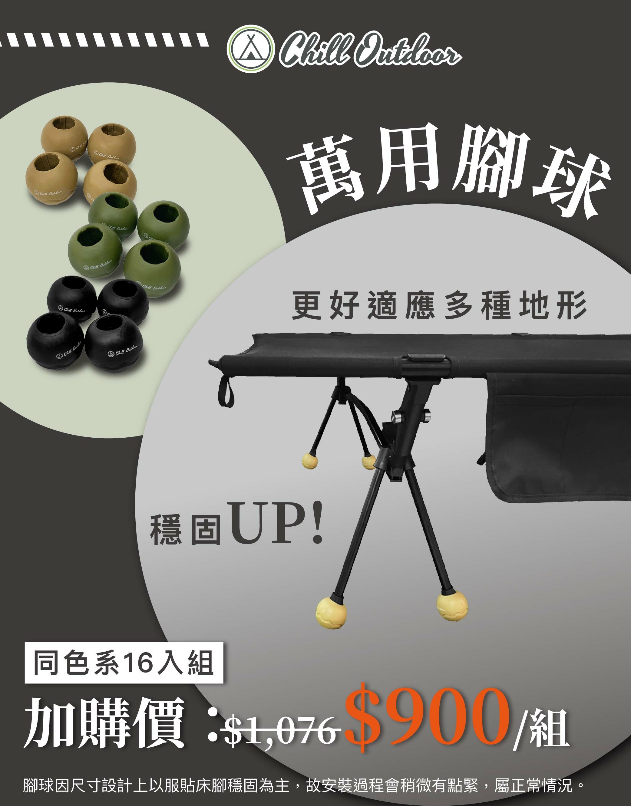 ▶可加購"Chill Outdoor 萬用腳球16入組" (黑色/軍綠/沙色)