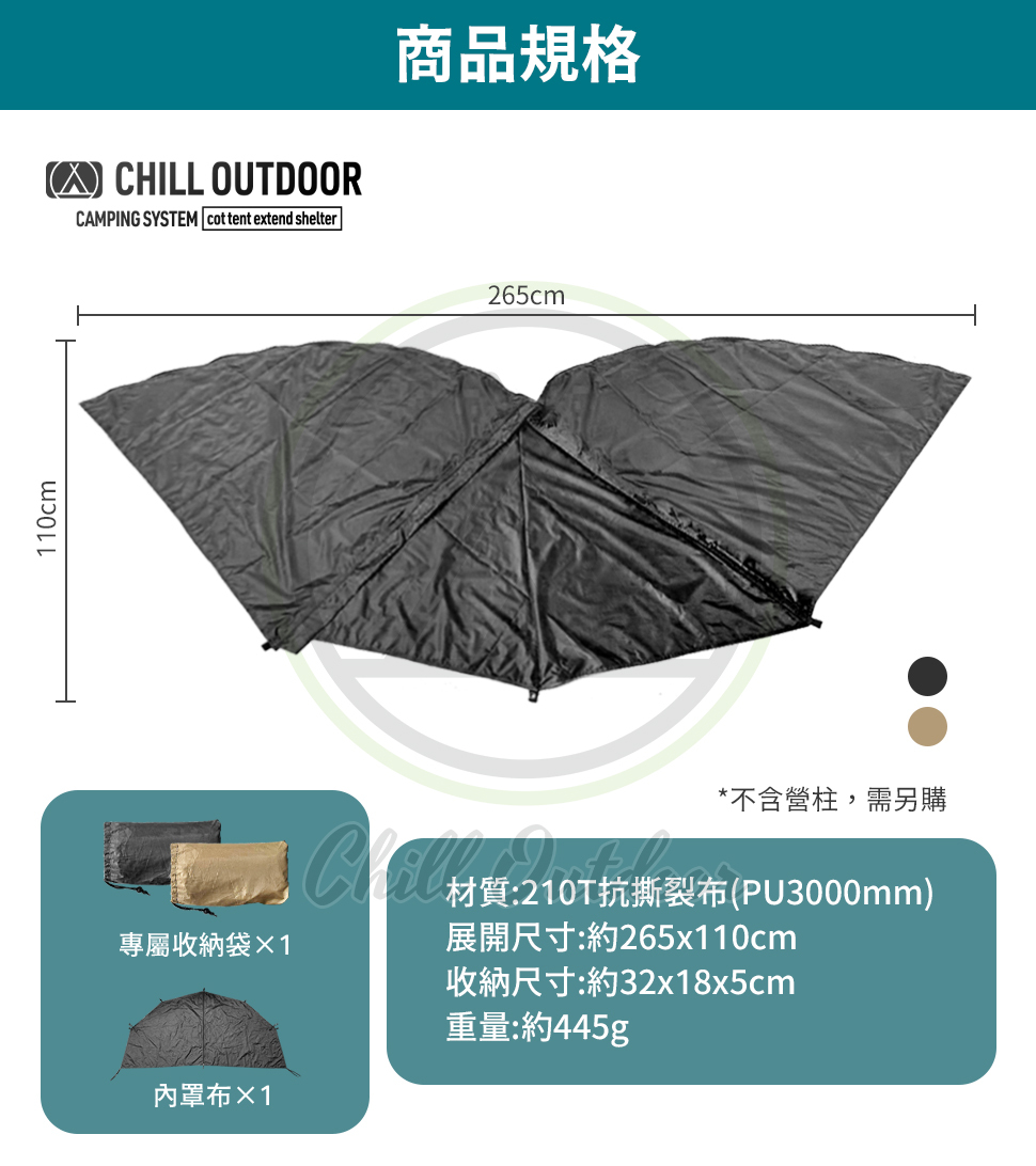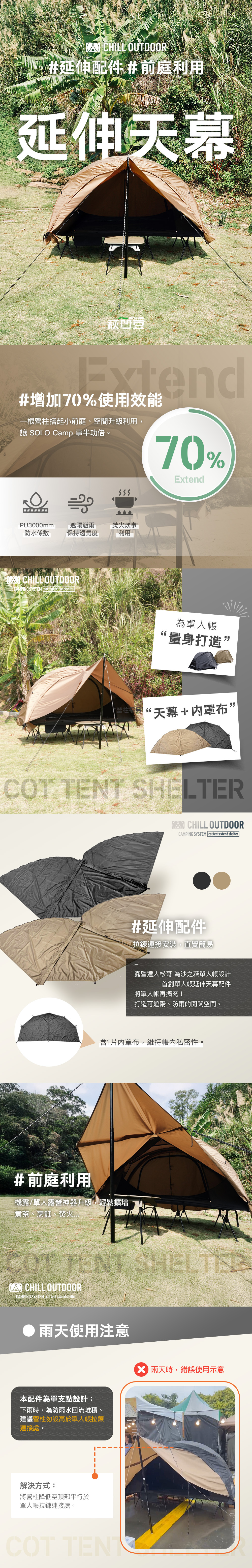 ▶首創單人帳延伸天幕配件!