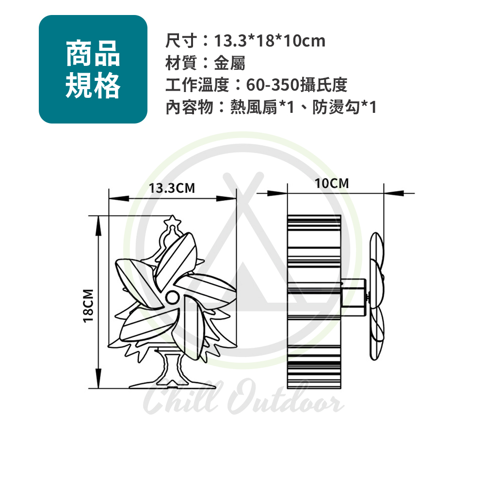 ● 無需電池或電源:利用熱量旋轉,並根據爐表面溫度自動調整轉速。
