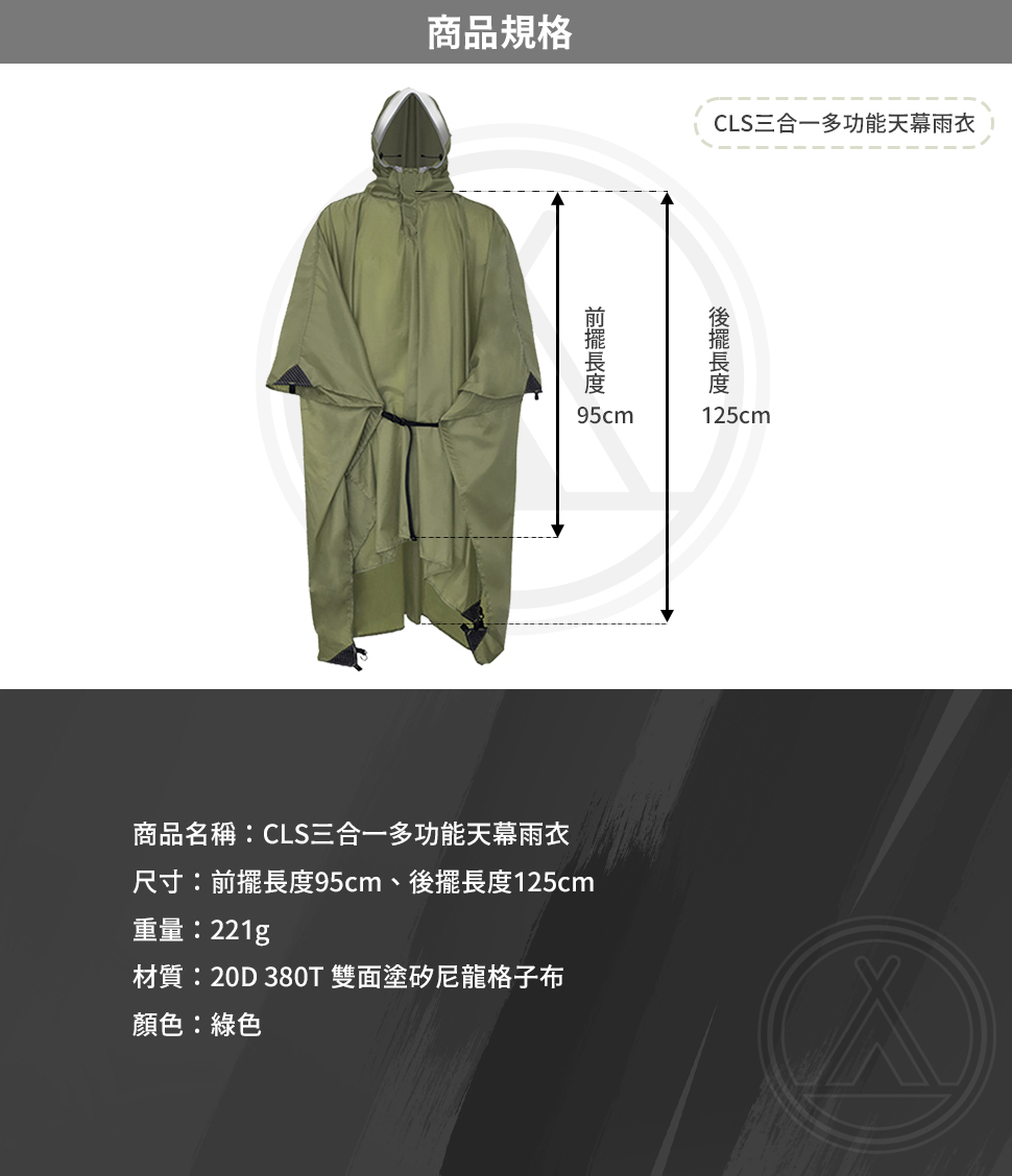 ◼︎三合一用途:雨衣 / 天幕 / 地布