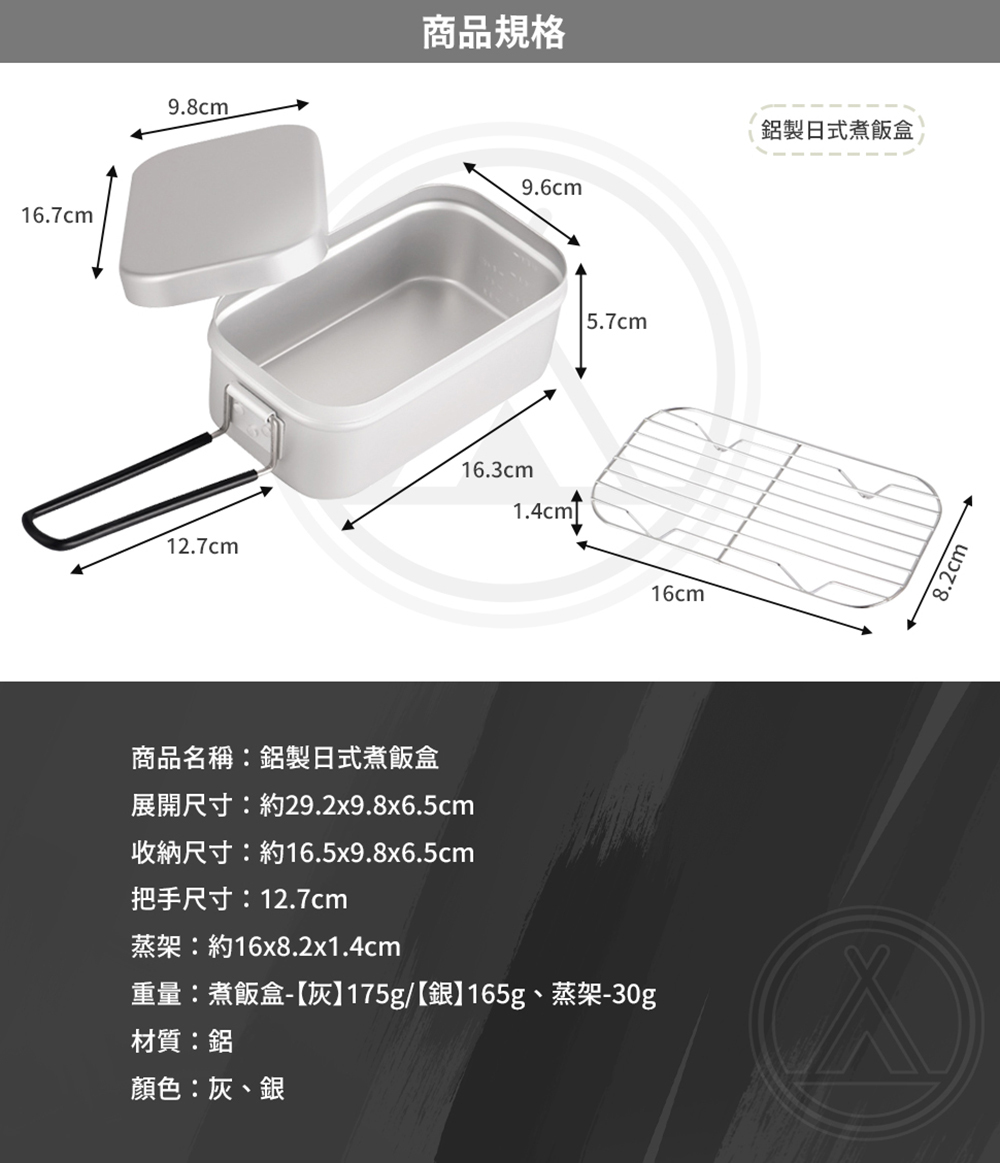 ✔重量:煮飯盒-【灰】175g/【銀】165g、蒸架-30g�