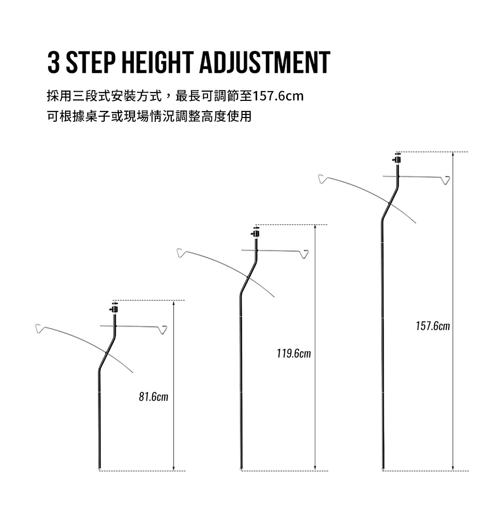 ✔三段式安裝方式,可依據使用情況調整高度