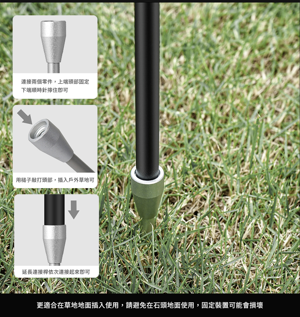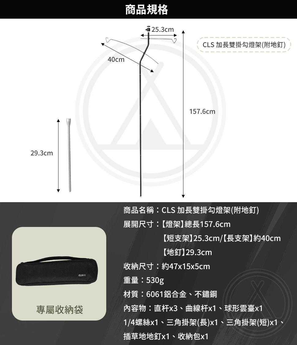 1/4螺絲×1、三角掛架(長)×1、三角掛架(短)×1、插草地地釘×1,收納包×1