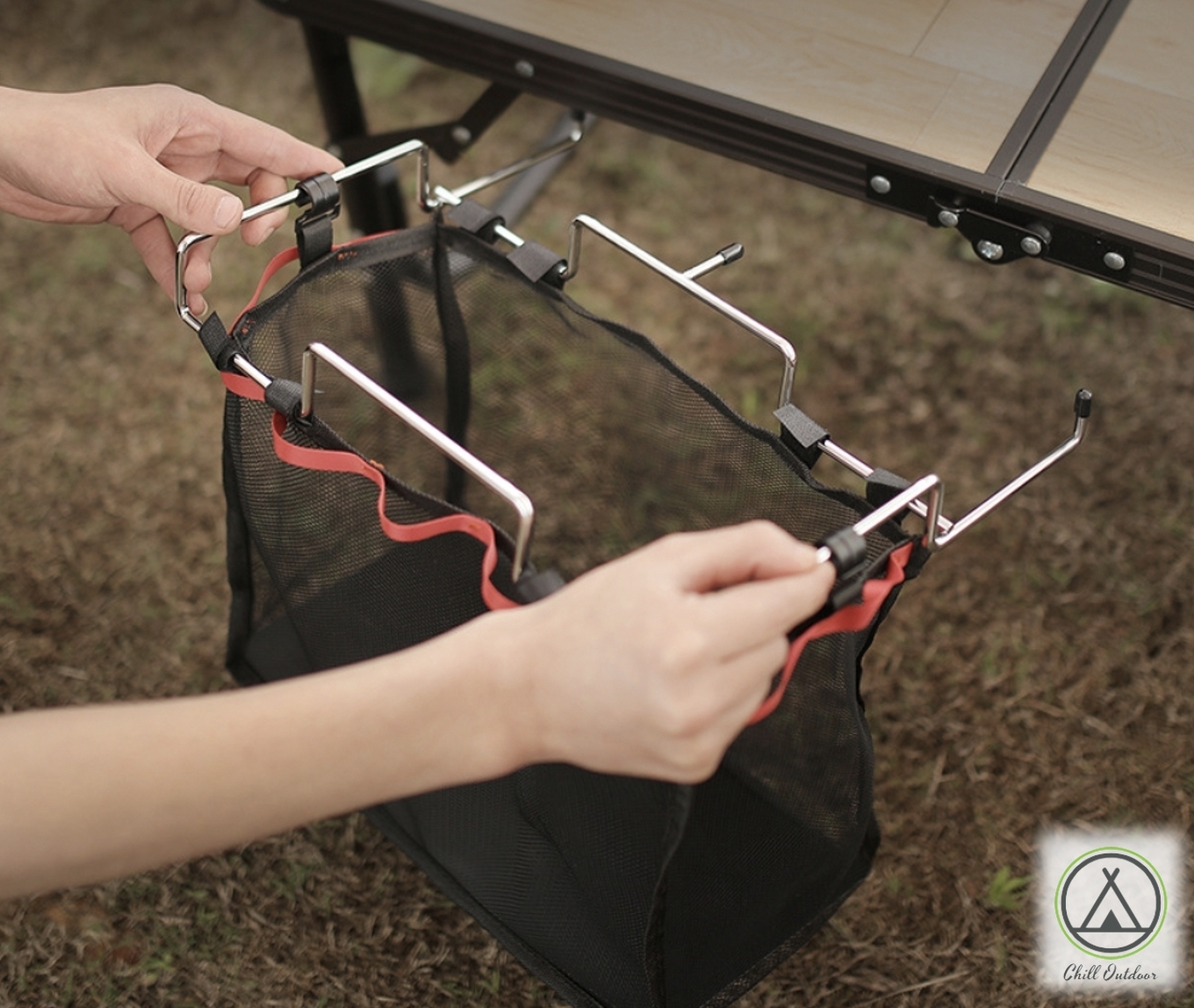 ✔框架套上塑膠購物袋即可變成桌邊垃圾袋架