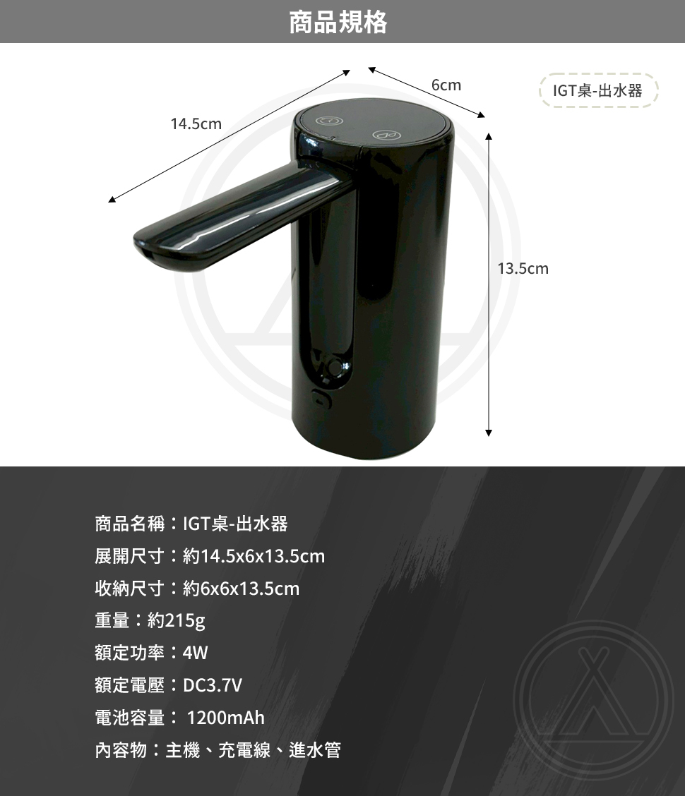 內容物:主機、充電線、進水管