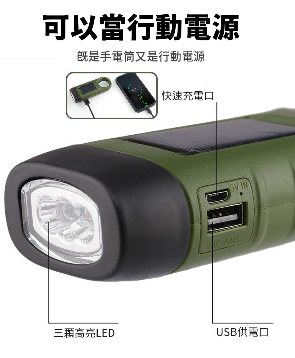 ✔太陽能充電/手搖充電