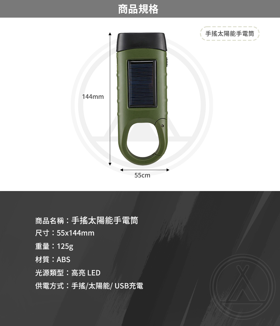 供電方式 : 手搖/太陽能/USB充電