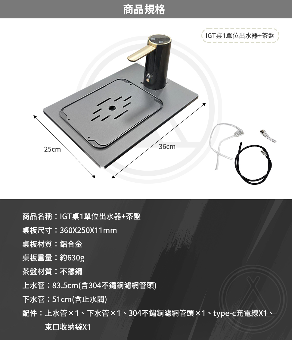 IGT 一單位茶盤桌板+出水器組合,適配IGT系統桌架,整合茶盤功能與出水設計,方便沖泡茶飲或料理使用。