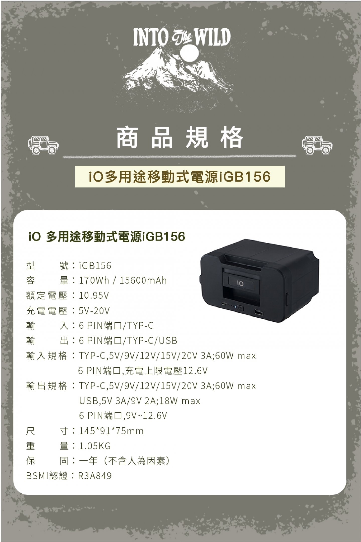 【iO 探索者多用途移動式電源 igb156】