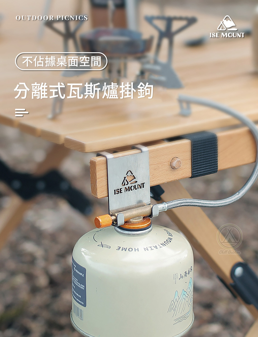 ✔ 分離式爐頭連接懸吊時,方便調整火力閥門