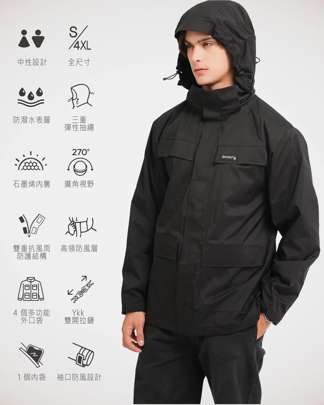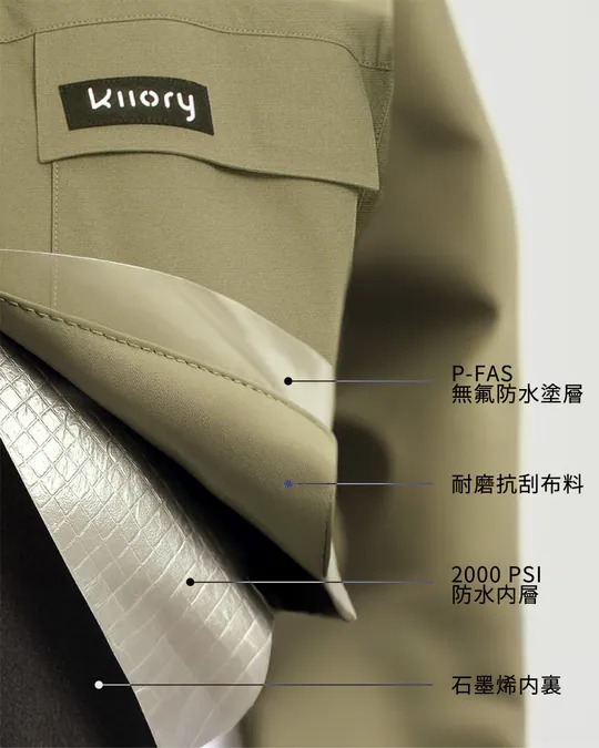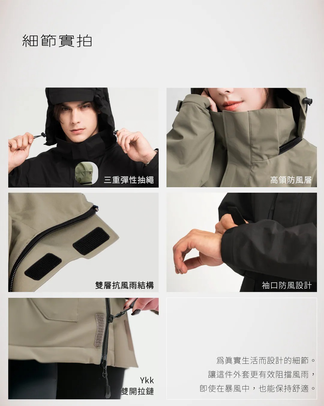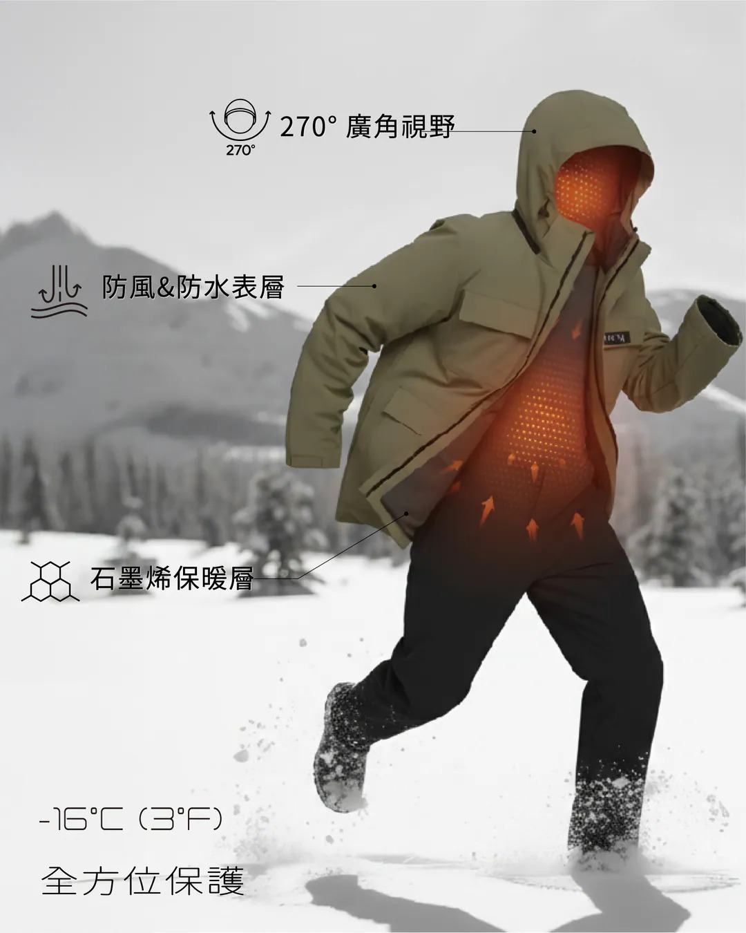 ■ 四層保護結構 | 表層防潑水膜、第二層耐磨表布、第三層防水夾層防止風雨的入侵,第四層A.Brolly石墨烯有效導熱保暖。