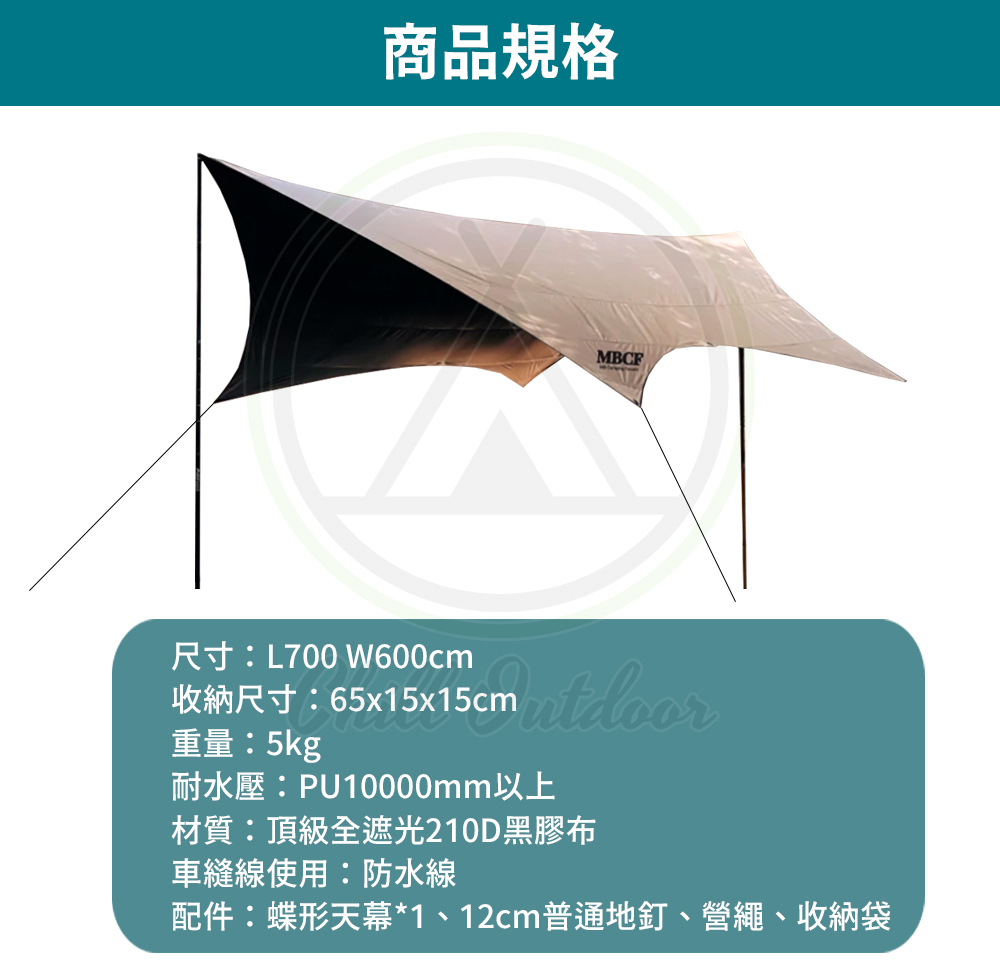 ✔配件:蝶形天幕*1、12cm普通地釘、營繩、收納袋