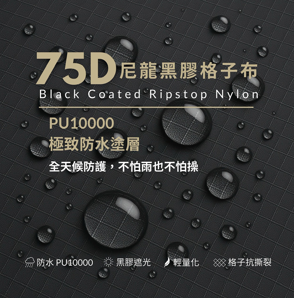 ✔75D 黑膠尼龍格子布,抗撕裂、抗UV、全遮光