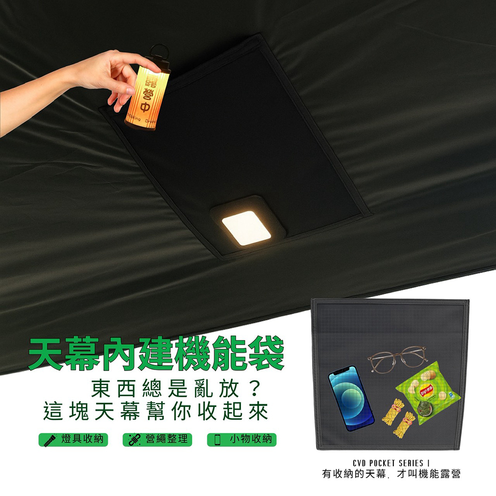 ✔專屬收納袋,具前後口袋,可收納營繩、燈具、小物