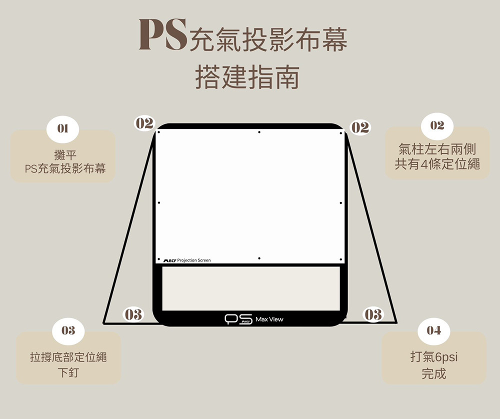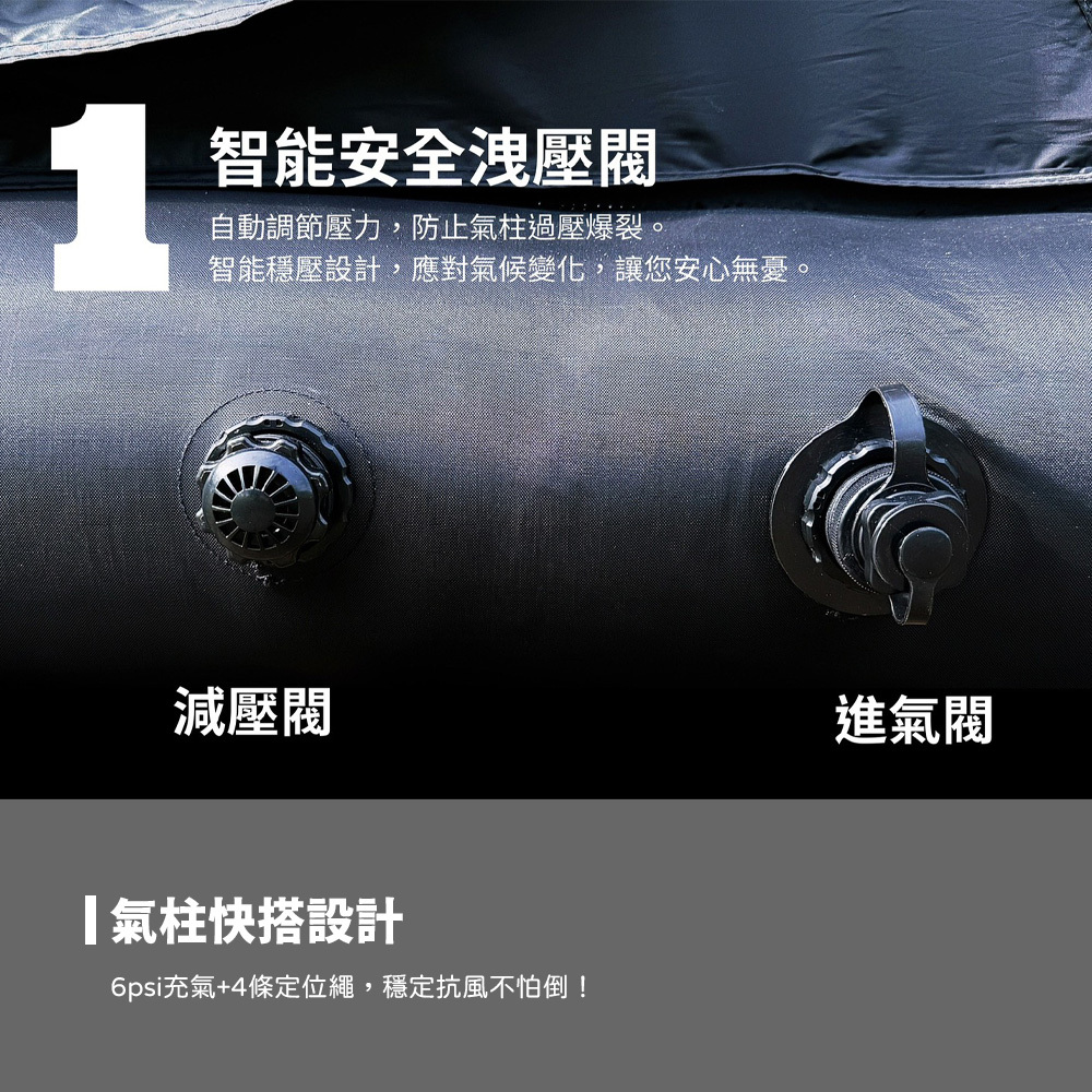 ✔氣柱快搭設計 | 6psi 充氣+4條定位繩,穩定抗風不怕倒!