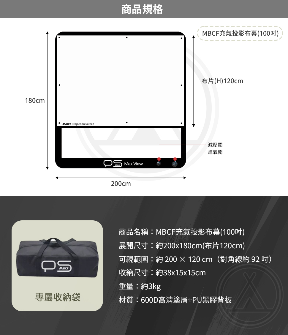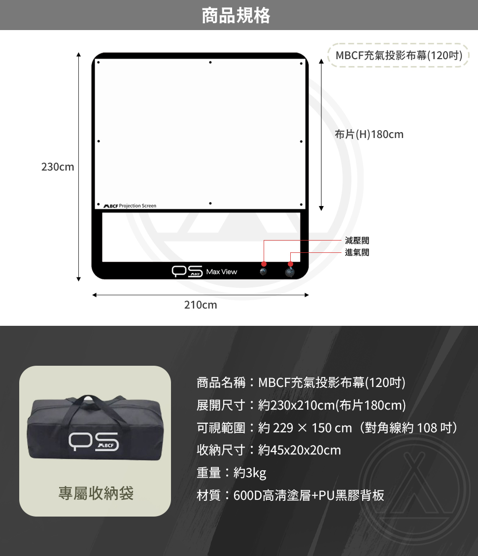 ✔超大120 吋畫面 | 210×230cm 展開,沉浸式觀影體驗