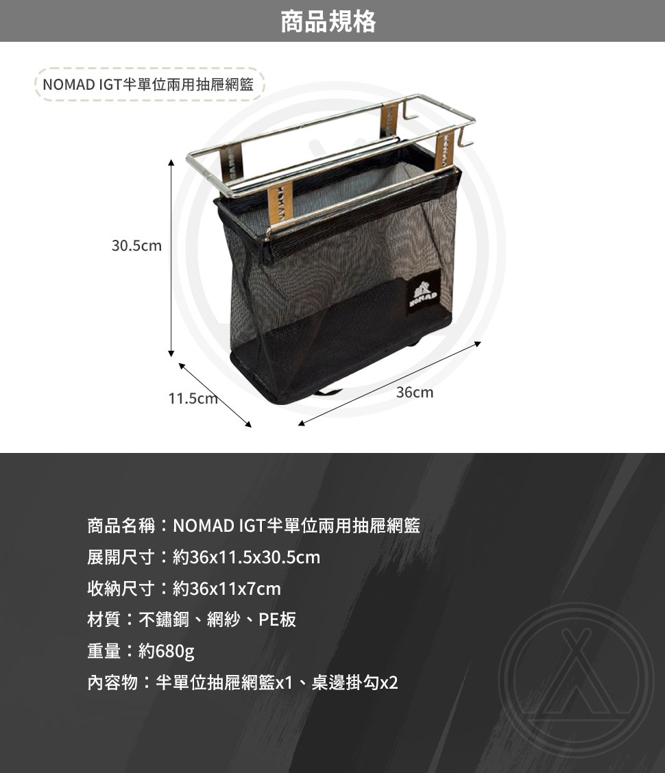 品名|NOMAD IGT半單位兩用抽屜網籃