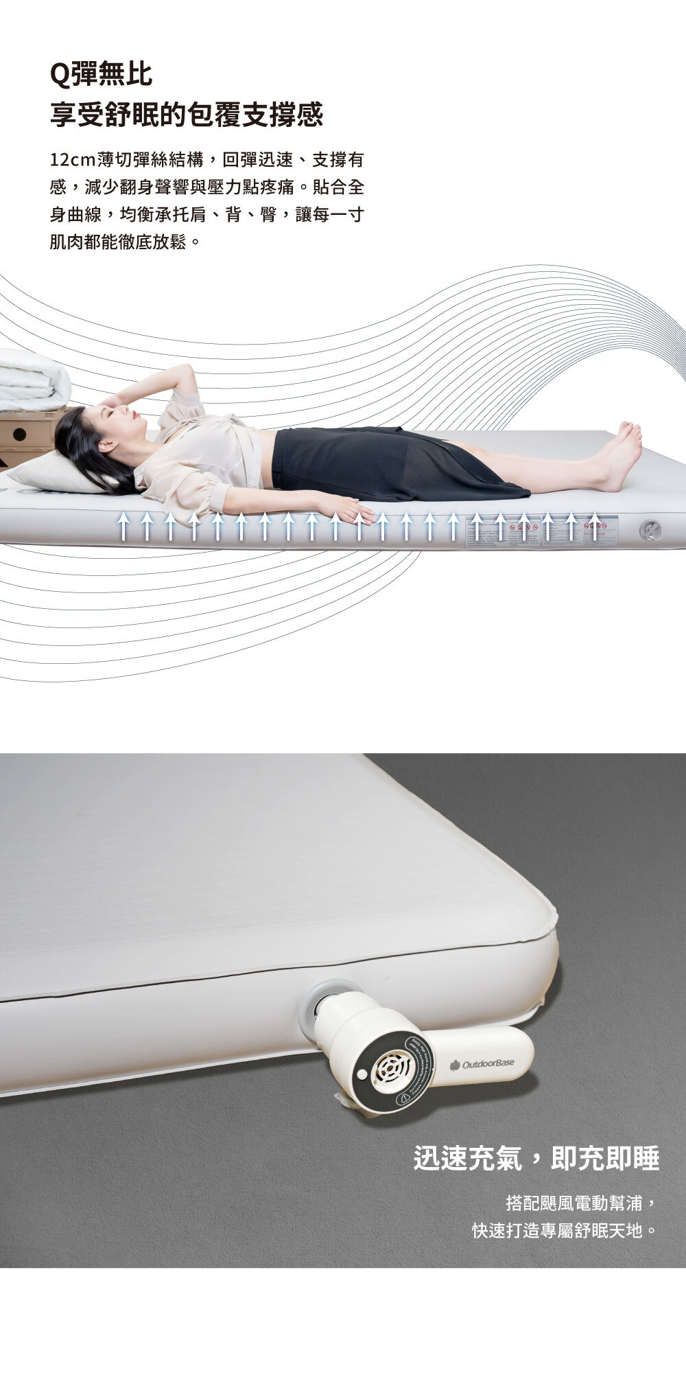 12cm超薄輕便,彈力均勻分佈,肌肉更放鬆。
