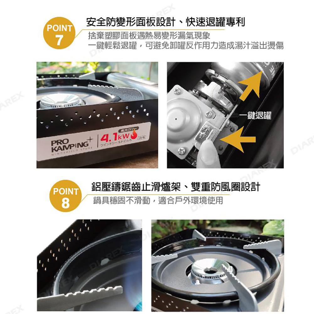 ✔雙重防風圈設計,鋁壓鑄鋸齒止滑爐架,鍋具穩固不滑度