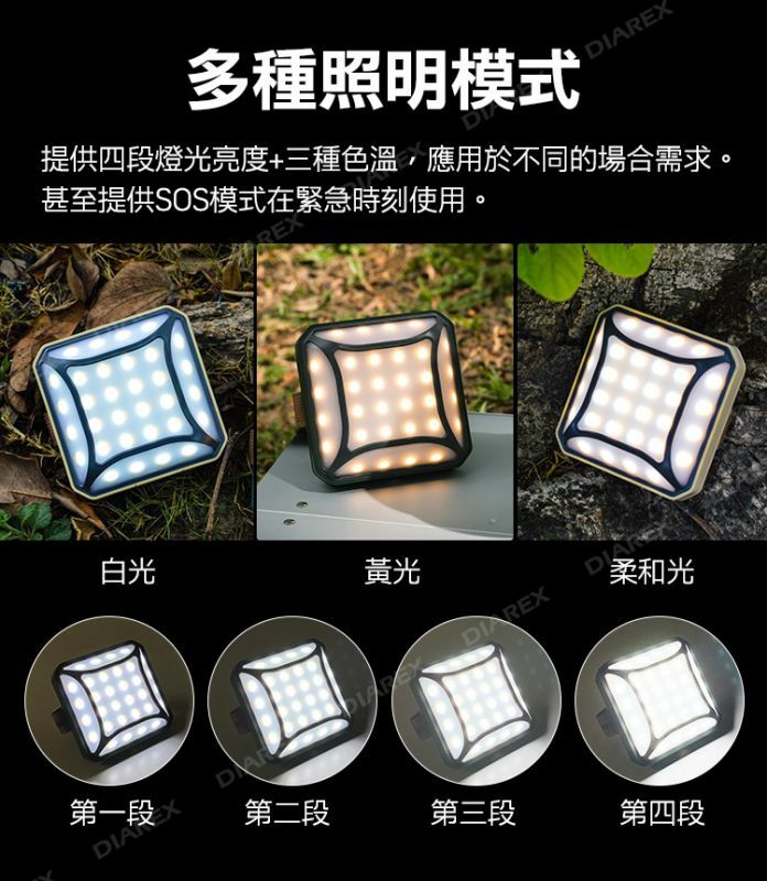 ✔ 多種照明模式:4段燈光+3色溫