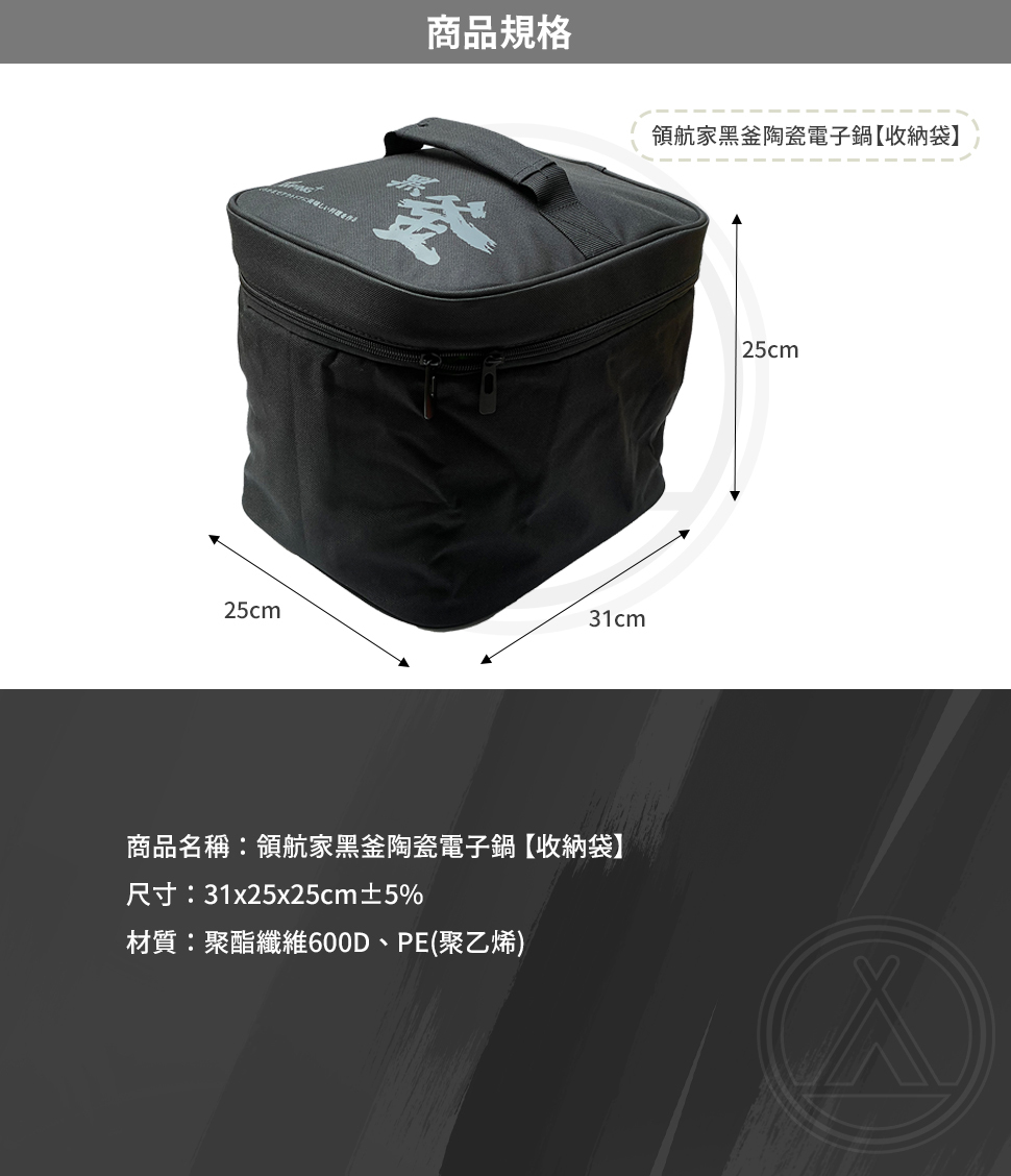 配件:電源線x1、量杯x1、飯匙x1【商品規格-收納袋】