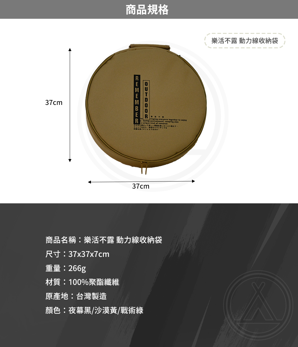 🔸台灣製造品質有保障尺寸:37x37x7cm重量:266g�材質:100%聚酯纖維 原產地:台灣製造 �顏色:夜幕黑/沙漠黃/戰術綠